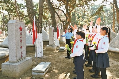 如今,辽宁省烈士纪念设施保护范围划设、标识悬挂均达到100%,烈士陵园不动产登记初步完成,基本形成“底数清、状况明、责任实”的管理格局。辽宁省“一体两翼”褒扬纪念廊道初步形成:以沈阳抗美援朝烈士陵园为中心,向东线延伸——抚顺雷锋纪念馆、本溪东北抗联史实陈列馆、丹东抗美援朝纪念馆;向西线延伸——锦州辽沈战役纪念馆、葫芦岛塔山阻击战革命烈士陵园、朝阳赵尚志纪念馆。散落在辽沈大地的红色资源,像一颗颗珍珠被串了起来,形成了一条贯穿全省的红色教育主线。