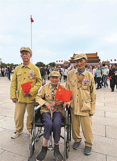 休整两天后,他们再次踏上旅途,来到首都北京。因为老兵腿脚不便,为了赶上16日早上的升旗仪式,他们凌晨便出发。
