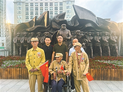 13日,一行人赶赴丹东,来到朝思暮想的鸭绿江断桥边。“当年,我们在夜色中跨过鸭绿江,去保家卫国。如今祖国强盛,人民安居乐业,和平来之不易,我们要倍加珍惜。”老兵申金生说道。