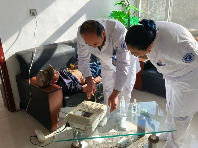 本次义诊,省第三荣军优抚医院精心组建了一支涵盖精神心理科、内科、中医科、护理骨干的7人专家医疗团队,携带心电图机、血压仪等医用专业设备与常备药品前往五台沟村,为村民提供全方位、专业化的健康服务。活动现场,设置了健康咨询、血压检测、心电图检查等多个服务区域,专家团队聚焦村民常见的冠心病、糖尿病、高血压等慢性病,以及失眠、焦虑等心理健康问题,耐心问诊、细致查体,逐一指导治疗用药,为村民制定个性化的治疗方案,现场按需发放降压、降糖、心脑血管等常用药物。与此同时,精神心理医生为有需求的村民提供心理疏导和情绪调节建议,内科医生为村民进行心电图检查,及时筛查潜在的心血管疾病风险,并现场给出干预措施。此外,医疗团队还通过开展健康知识宣教,普及慢性病防治知识等,有效提升了村民的健康管理意识。“这次不仅免费给了对症药,大夫还手把手教我怎么用药,这些年医疗队总来,我们可高兴了,我真是太有福气了!”97岁的高大娘握着医务人员的手激动地说。不少村民也纷纷表示,这样的义诊活动实实在在解决了他们“出村难、看病远”的困扰。