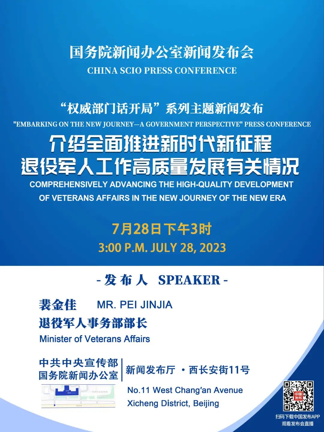 国新办将举行全面推进新时代新征程退役军人工作高质量发展有关情况新闻发布会