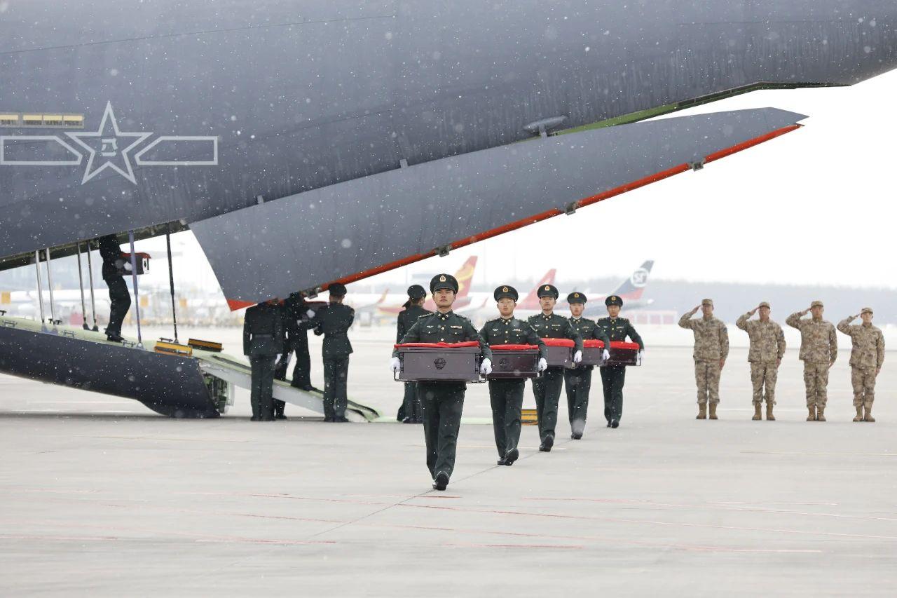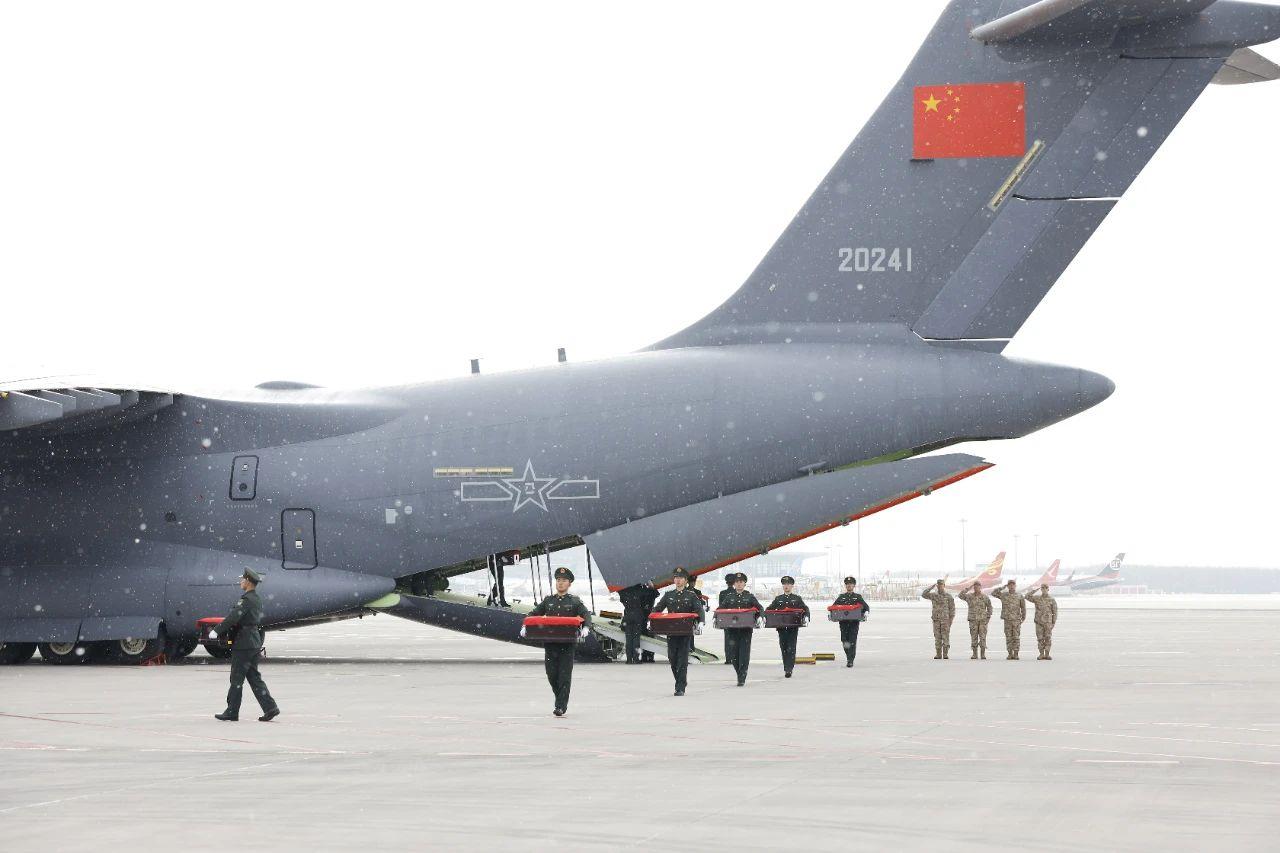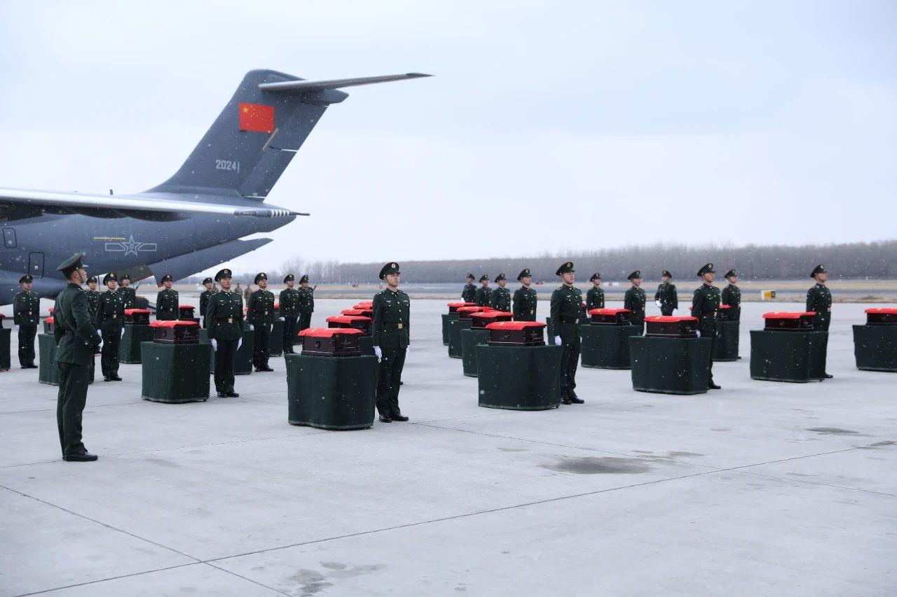 11月23日上午,第十批在韩中国人民志愿军烈士遗骸回到祖国母亲的怀抱,25位志愿军烈士英灵及遗物由我空军专机从韩国接回并护送至辽宁沈阳。
