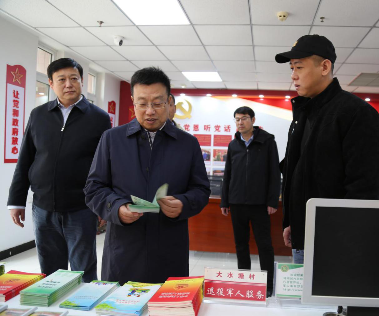 李国伟一行先后深入西市区滨海街道办事处大水塘村退役军人服务站、站前区跃进街道办事处退役军人服务站、市光荣院、市军休服务中心开展调研。李国伟强调,学习好贯彻好党的二十届四中全会精神,是当前和今后一个时期的重大政治任务,全省退役军人事务系统要坚持以习近平新时代中国特色社会主义思想为指导,自觉将退役军人工作融入国家发展全局特别是“十五五”规划擘画的宏伟蓝图去思考和谋划,扎实编制好退役军人工作事业发展规划。要持续强化思想政治引领,大力推进老战士口述历史“抢救性”工作,立足“雷锋精神发祥地”的独特优势,扎实开展“老兵永远跟党走”宣讲实践活动,引导广大退役军人始终听党话、跟党走;要积极服务部队备战打仗,加快光荣院、军供站改革发展,提升平时服务、战时保障能力;要建强军休服务机构,满腔热情地做好军休服务管理工作,更好满足军休干部需求;要牢牢把握基层退役军人服务中心(站)作为政策落实“最后一公里”的职能定位,巩固优化服务体系,持续推广服务退役军人“五心”工作法,推动服务中心(站)建设运行提质增效,不断提升服务保障水平。